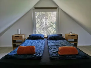 A szállás erdei környezetben található, mellettünk Kék-túra útvonal fut!