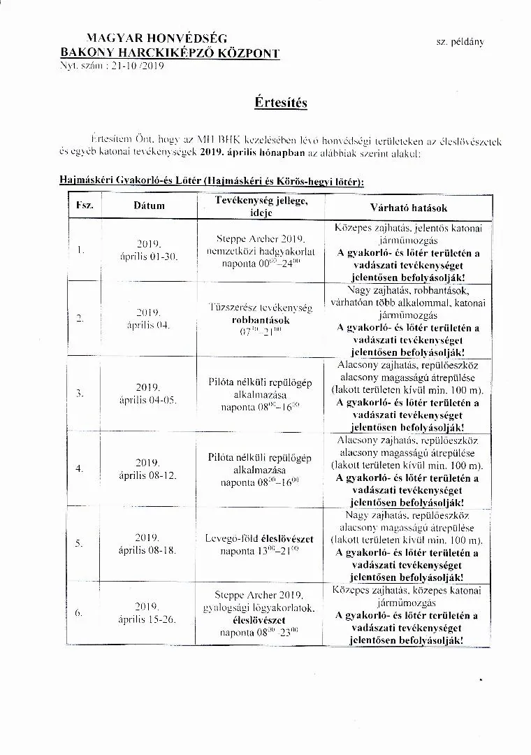Bakony Harckiképző központ, 2019 április havi éleslövészetről...