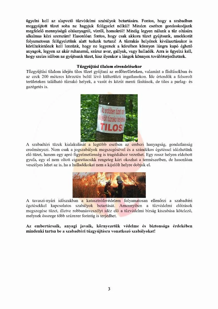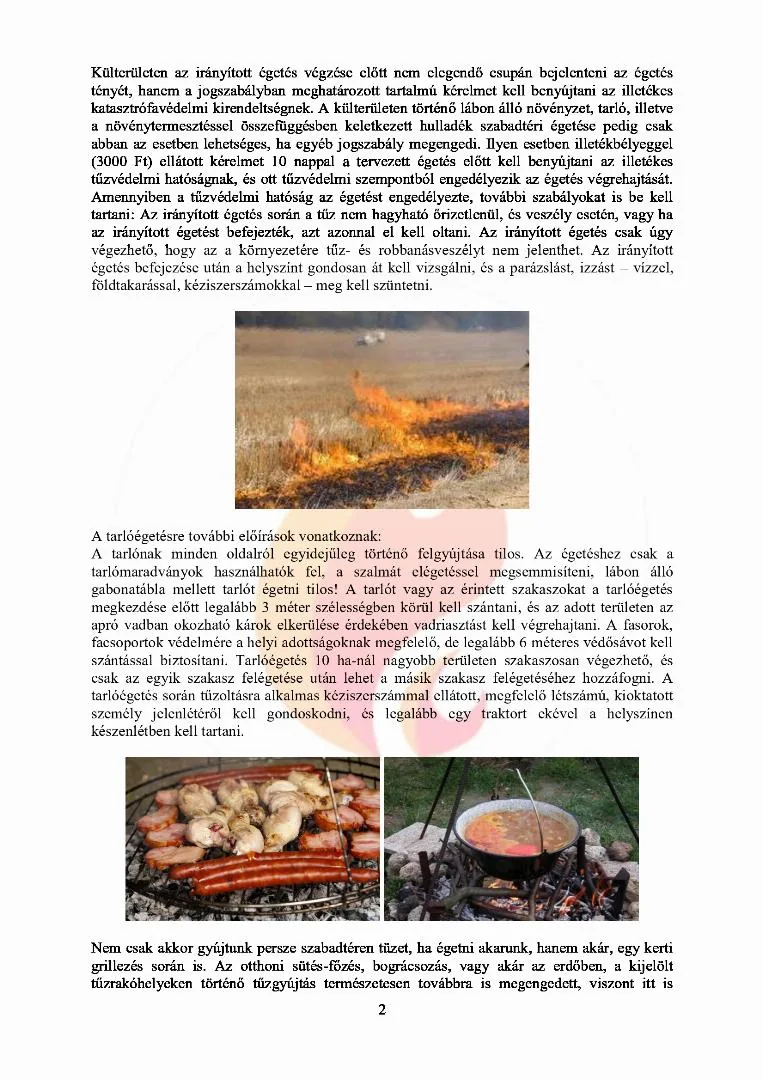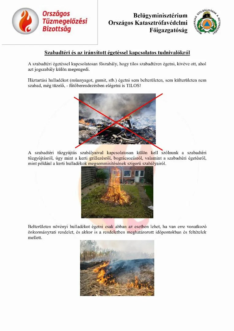 Tilos szabadtéren égetni, kivéve ott, ahol azt jogszabály külön megengedi.