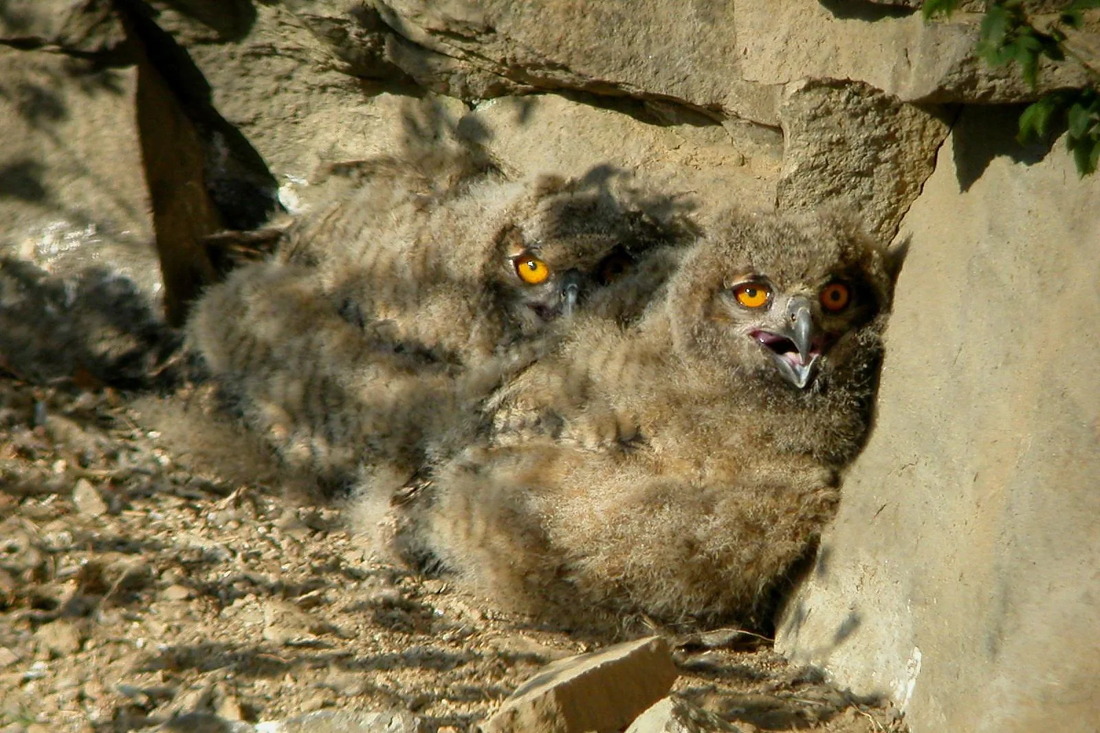Hét költőhelyen jártam, ebből háromban könyvelhetek el sikeres költést, mind a három helyen páronként két fiókát nevelnek az uhu szülők. Még a kora tavasszal nagy örömömre szolgált, hogy egy gallyfészekben újra megtelepedett és ott jártamkor kotlott a tojó a Déli-Bakony erdőrengetegében, de sajnos ezen a helyen ismeretlen ok miatt nem keltek ki fiókák. Az új uhu költőhelyek felderítése, mindig izgalmas számomra és egyben kihívást is jelent, hisz oly módon olvad bele környezetébe a kotló madár, hogy még a legkisebb bokor vagy kő takarását is kihasználja, tehát ember legyen a talpán, aki egy felhagyott vagy éppen működő kőbányában, akár egy természetes sziklafalon rátalál erre a madárra.
