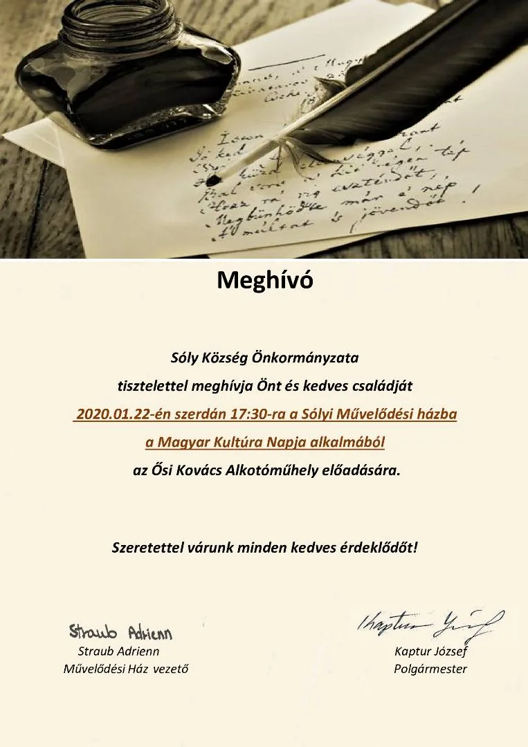 Sóly Község Önkormányzata tisztelettel meghívja Önt és kedves családját
