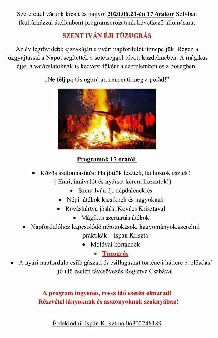 Szeretettel várunk kicsit és nagyot 2020.06.21-én 17 órakor Sólyban (kultúrházzal átellenben) programsorozatunk következő állomására: