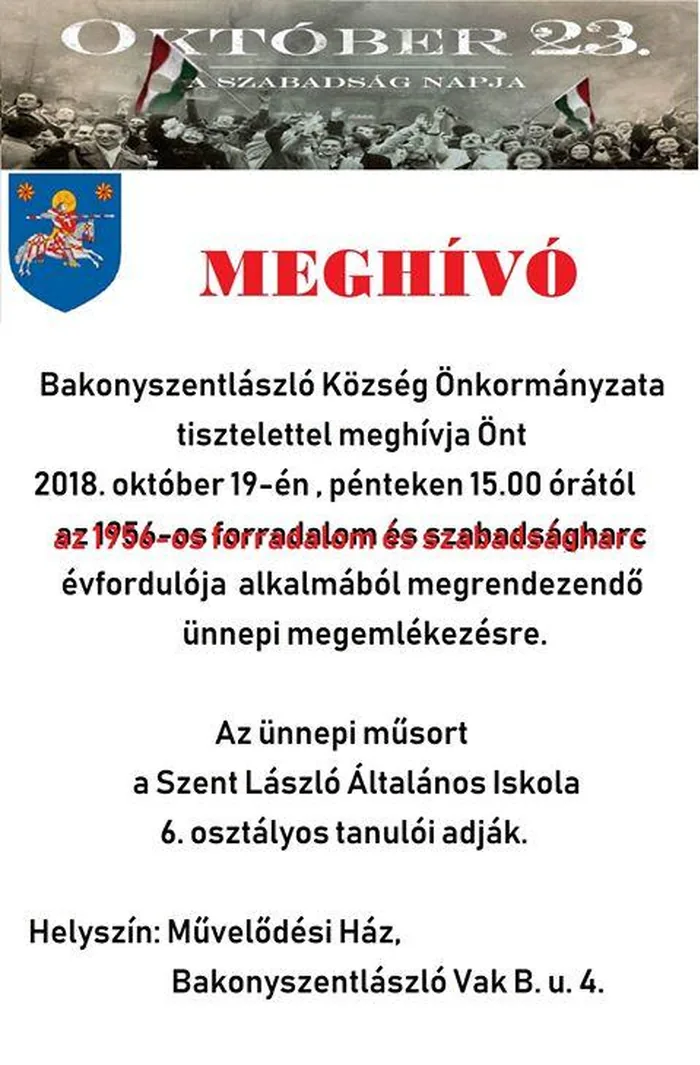 Az ünnepi műsort a Szent László általános Iskola 6. osztályos tanulói adják.