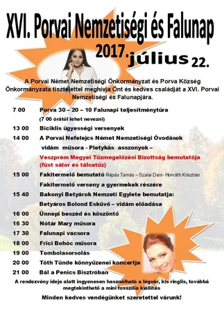 Porva életében az egyik legnagyobb esemény a hagyományosan minden évben megrendezésre kerülő falunap. Ilyenkor összegyűlik a falu apraja és nagyja, hazalátogatnak a távol élő rokonok, és sokan érkeznek a környező településekről is.