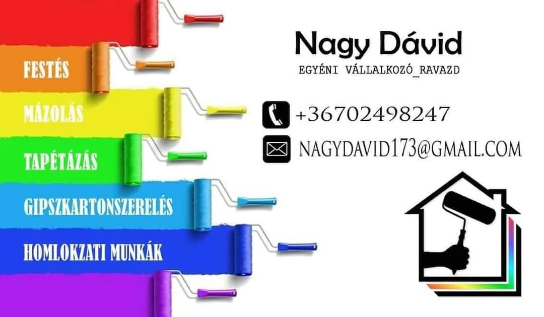 Festés, mázolás, tapétázás, gipszkartonszerelés, homlokzati munkák.